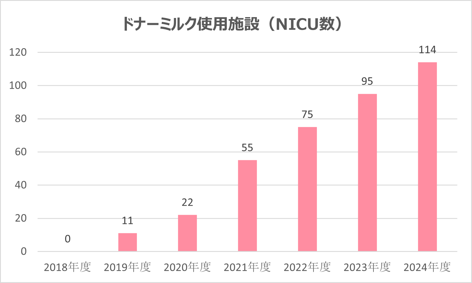 - ドナーミルク使用施設数: 114施設 (日本財団母乳バンク:66施設丨日本母乳バンク協会:48施設)