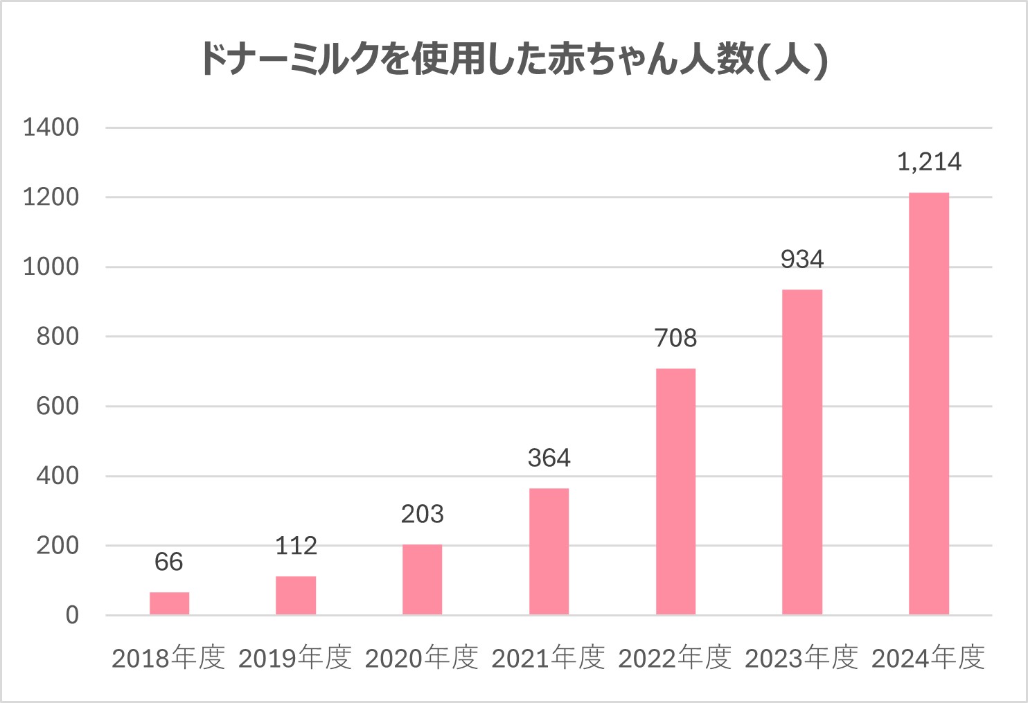 - 提供赤ちゃん人数 : 1,214人(日本財団母乳バンク:530人丨日本母乳バンク協会:684人)